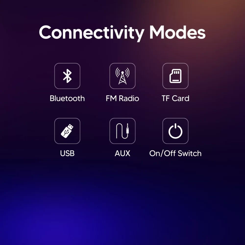The Stanza RGB 16W Wireless SoundBar pumps out 🔊 bangers with 16 watts of 💪! Get up to 4-5 hours of bop-a-long 🎶 when the 2400 mAh battery is 💯. 🤩 RGB light effects come alive with just 3-5 hours of charging time. Go wireless with connection options galore: Bluetooth, FM Radio, and TF Card 🤙
