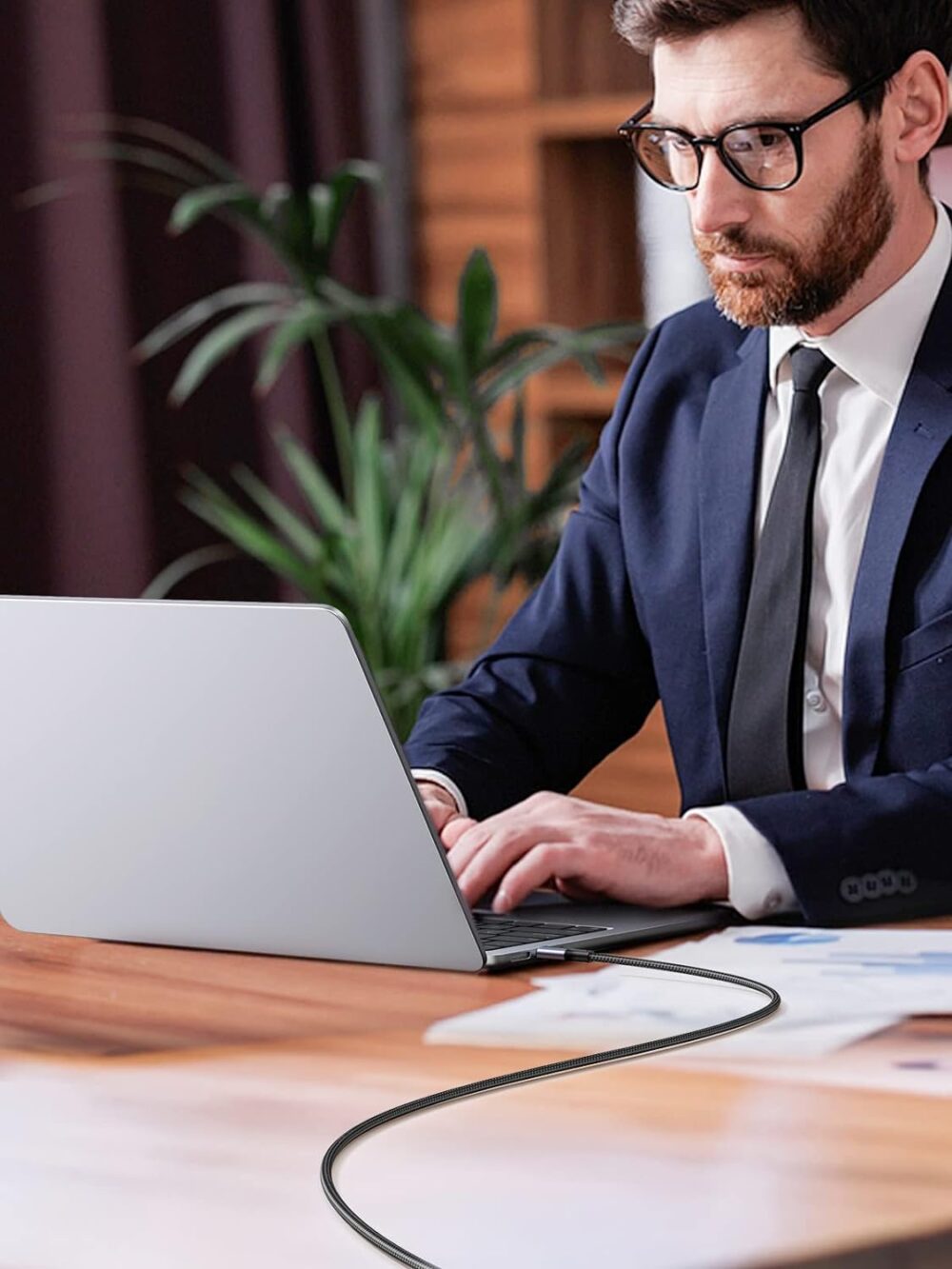They are designed for fast charging of high-power 100W laptops. The maximum charging time is just 1.5 hours – 1 hour less than with 1st generation cables.